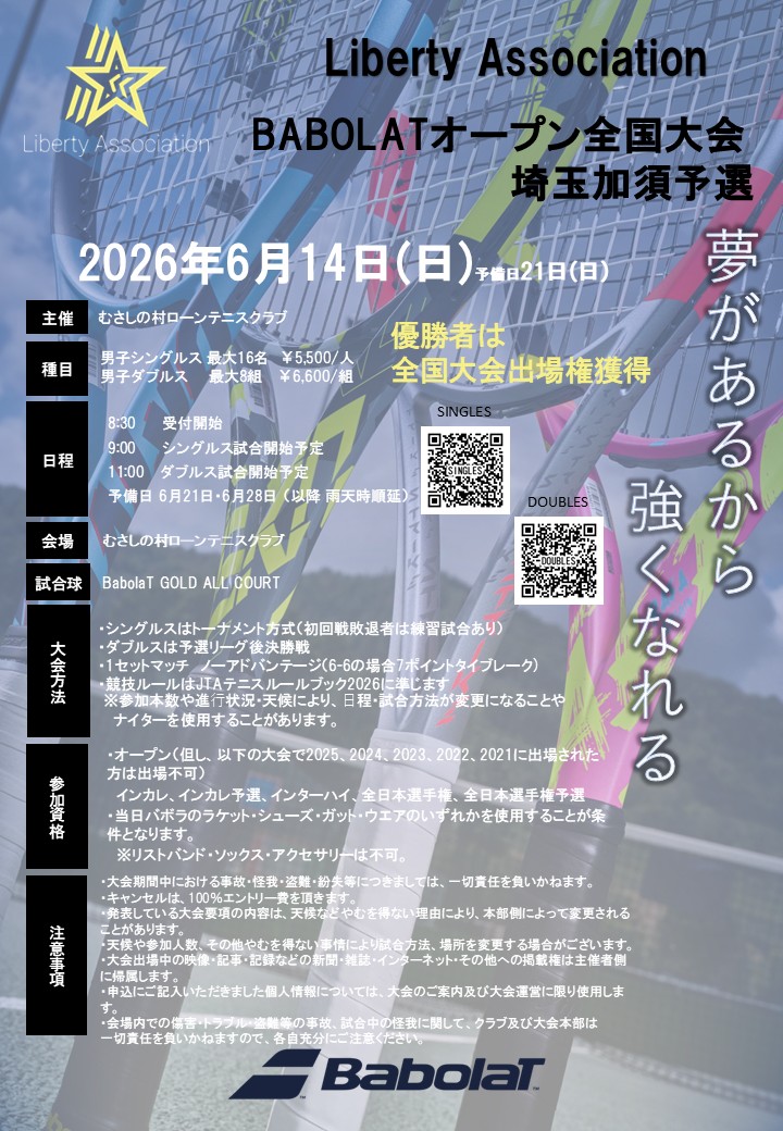 BABOLATオープン2026埼玉加須大会を開催いたします。